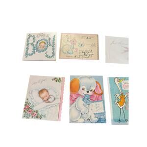 VTG Hallmark Baby Announcement Retro Card Stork Boy Girl Just Arrived USED