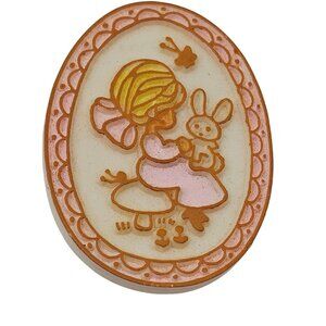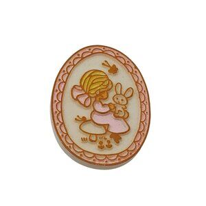 VTG Hallmark Brooch Easter Cameo Girl + Bunny Plastic Lapel Pin Cute Spring Love