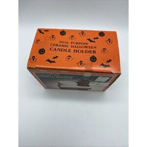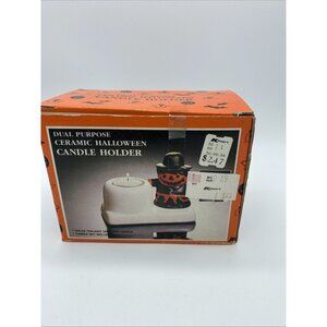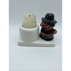 VTG Halloween 1980's Kmart Scarecrow Pumpkin Tea Light Candle Votive Holder 4"