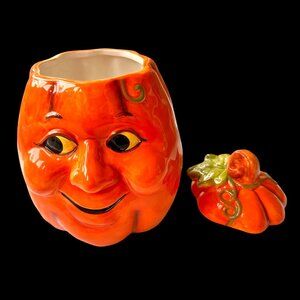 VTG Halloween Anthropomorphic Pumpkin Cookie Jar Ceramic Happy Jack O Lantern