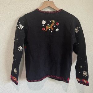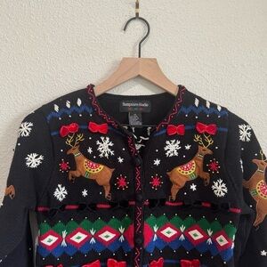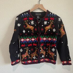 VTG Hampshire Studio Ho Ho Ho Christmas Raindeer Cardigan Granny 90's Knit
