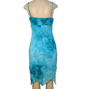 Vintage Hana Fairy Slip Dress Womens Large Blue Ice Tie Dye Asymmetrical Crinkle Stretchy Y2K 90s Fabric Fully Lined No Pockets Very Sexy