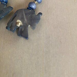 Vintage blue dyed cow bone hand carved elephant dangle earrings
