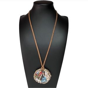 Vintage Hand Carved and Hand Painted Pendant Necklace.