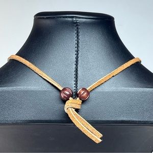 Leather strap with bead accents measures approx 26".