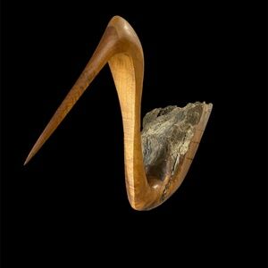 This is a beautiful hand carved wooden sculpture of a coastal bird made from a piece of driftwood. It may be a Great Blue Heron, a Brown Pelican, a Whimbrel or perhaps a type of Cormorant. It's in excellent condition. It's vintage from possibly the 90s. I live in Crescent City, California and it may be a local artist.