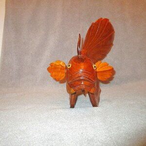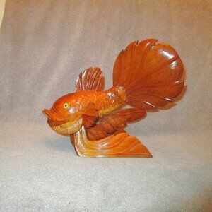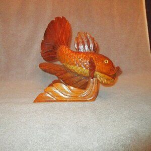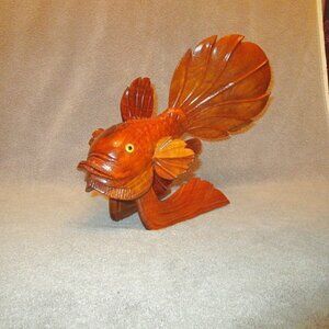 VTG Hand Carved Wood Detailed Fish Sculpture Realistic Detailed Art 12" MCM