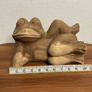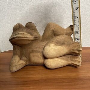Vintage Hand Carved Wood Frog Statue Figurine Relaxing Lounge Toad Rustic Folk Art Decor 7"X10"X5"
