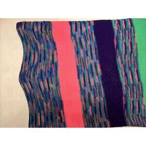 This VTG Hand Knitted Afghan Throw Blanket features a unique multicolored crochet border and a striped pattern, adding a pop of color and texture to your home decor. Made in the United States, this handmade afghan throw is 36x48 in size and perfect for adding warmth and style to any room. The machine wash cold gentle care instructions make it easy to keep clean and cozy. The Art Deco style and vibrant colors make this blanket a standout piece in any living space.