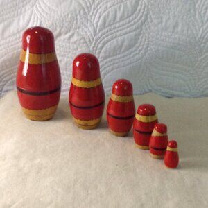 VTG Hand Painted (6) set of Wooden Russian Santa Nesting Dolls, Christmas Style