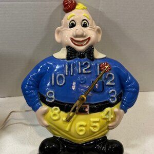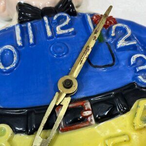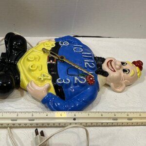 VTG Hand Painted Ceramic Wall Clown Working Clock Decor 13"x9.5"