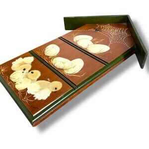 VTG Hand Painted Hen House Art Wooden Plaque Home Artist 1970s Eggs Chics