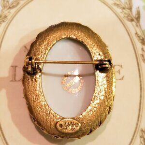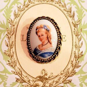 Vintage Cameo Hand Painted Lady in Blue, Limoges Brooch Pin, Made in France, Signed Estate Jewelry