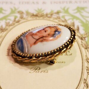 VTG Hand Painted Lady in Blue Limoges Brooch Pin
