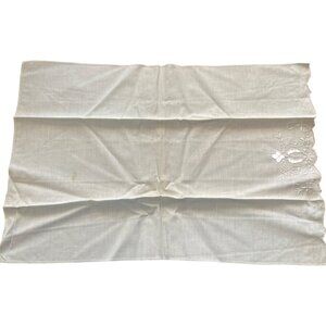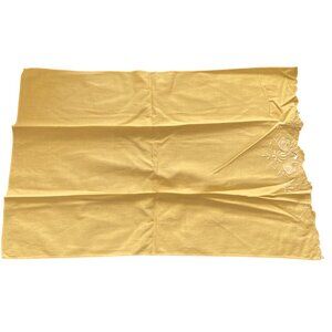 Vintage embroidered hand towel with charming yellow and green design. Note: Stains present, adding character to this unique piece. Perfect for adding a touch of nostalgia to your kitchen or bathroom decor.