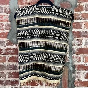 VTG Hand Woven Women's Boho Fringed Wool Vest S 16x23