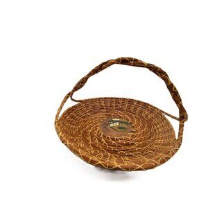 VTG Handcrafted Coiled Pine Needle Basket With Twisted Handles & Hand Painted