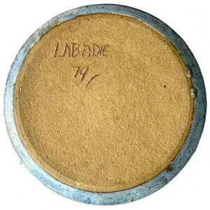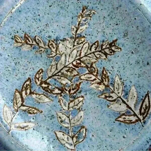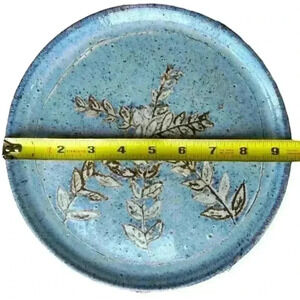 VTG Handcrafted decorative blue pottery plate with wheat (or leaf) detail signed