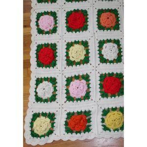 Vintage Handmade Multicolor Rose Flowers Granny Square Afghan