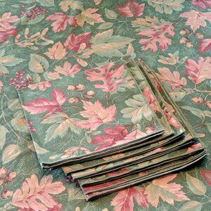Beautiful handmade artisan oblong tablecloth and napkins. Vintage Autumnal Fall Leaf Pattern.