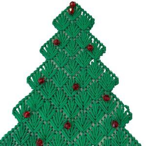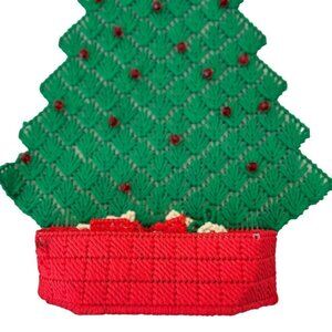 This vintage, handmade Christmas tree is crafted from beaded plastic canvas and comes with 20 hanging ornaments. Perfect for adding a nostalgic touch to your festive decor.