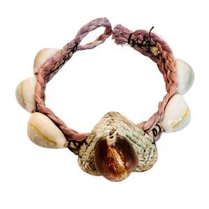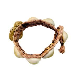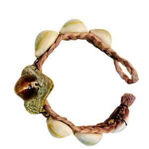 Vintage Handmade Cowrie Bracelet with Heart Medallion. These beautiful rustic bracelets will take you on vacation every time you wear it. Cowrie shells are known to bring good luck and to protect the spirit of the wearer, and many tribes use them in spiritual ceremonies. They also are a sign of femininity and fertility, with women often wearing them not only to help them conceive, but to help them give birth safely. Please wear this delightful bracelet at your own discretion, wearer beware. There are two bracelets available, one Medium and one Large.