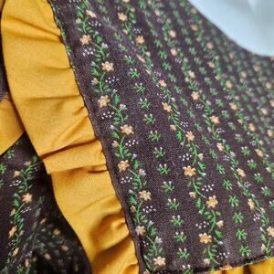 VTG Handmade Floral Striped Square Dancing Dress with Yellow Ruffle Trim