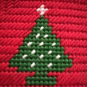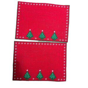 VTG Handmade Needlepoint Two Christmas Placemats 16”‎ X 12 “ Christmas Trees
