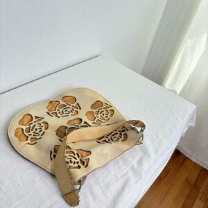 VTG Handmade One of a Kind Artisan Tooled Leather Floral Rose Shoulder Bag Purse