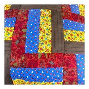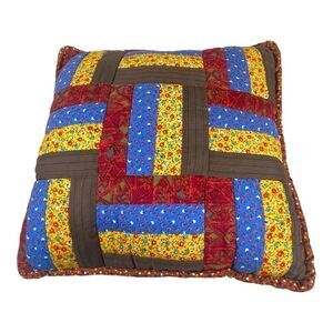 VTG Handmade Quilted Patchwork Pillow Geometric Design Retro Boho Kitschy 14”