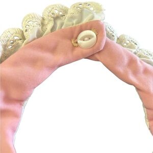 VTG Handmade Quilted Reversible Bib Tulip Flower Lace Edge Pink White Button Bow