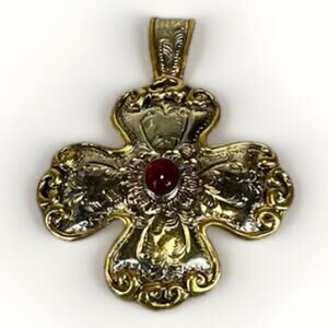 with a Simulated Ruby center stone Maltese Cross Pendant