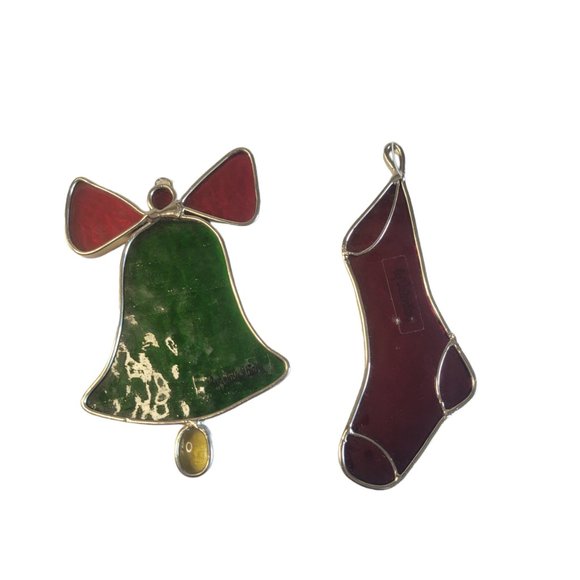 VTG Handmade Stained Glass Ornaments by Valentien Set of 2 Suncatcher Ornament