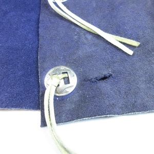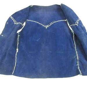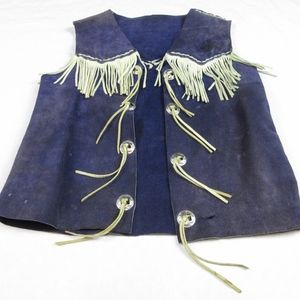 Vintage hand made / hand sewn Cowgirl / Cowboy vest made of blue genuine / real suede leather. White leather contrasting fringe and concho trim.