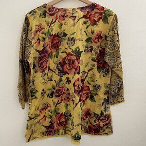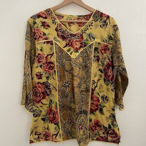 VTG Handmade Women Tunic M/L Mustard Floral Embroidered Patchwork Artsy Boho 70s