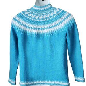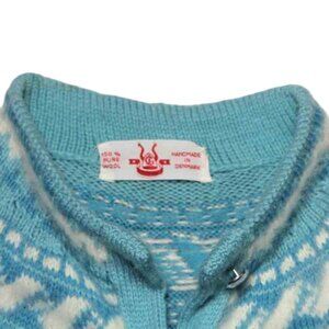 VTG Handmade Wool Fair Isle Cardigan Sweater Blue White Nordic Women's Medium
