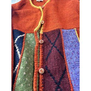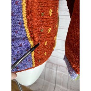 VTG Handmade by Rainbow crafts Cardigan women Size L Knitted Sweater Orange Blue