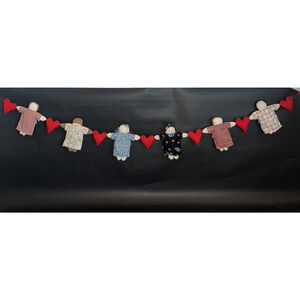 VTG Handsewn Ragdoll & Hearts 42" Garland Love One Another Folk Art Cottage Core