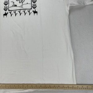 This vintage Hanes Beefy T-Shirt features a unique graphic print with a hot air design, adding a touch of Southwestern and Bohemian style to your wardrobe. The crew neck and regular fit make this white XL shirt comfortable to wear, while the single stitch construction ensures durability.