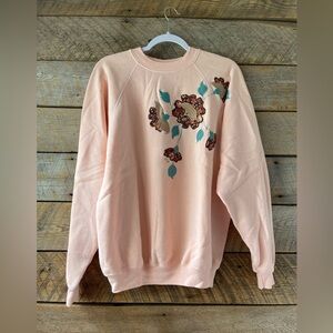 Vintage Hanes Peach Embroidered Floral crewneck Sweatshirt. Made in the USA. Womens Size XL. ** please check measurements as vintage clothing tends to run smaller. This likely fits more like a medium** Item is in good pre-owned condition. May show signs of wear such as stains, pilling, dirt and general wear. Please see photos for full details. Any size measurements shown are approximate. Smoke free, pet friendly home. Colors may vary slightly based on lighting.