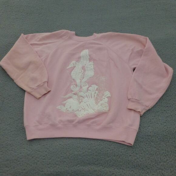 VTG Hanes Sweater Womens Large Seahorse Puff Paint Pink Graphic USA Made 90s