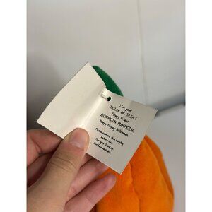 Adorable “Floppy Friends” Halloween pumpkin plush with soft orange body and green stem. Perfect festive décor or cuddly seasonal toy for kids and collectors.