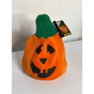 VTG Happy Halloween Floppy Friends Pumpkin Plush Toy Orange Green Stem 6"