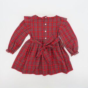 VTG Happy Kids Girls 5 Red Plaid Tartan Check White Collar Smocked Dress Holiday