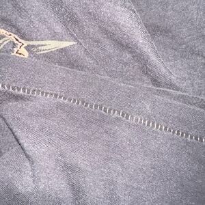 Vintage Hard Rock Baltimore Distressed V-Neck Tee Shirt. Gray. Distressed Double Guitar appliqué design. Single Stitch. 100% cotton. Super soft. Raw edges in places.