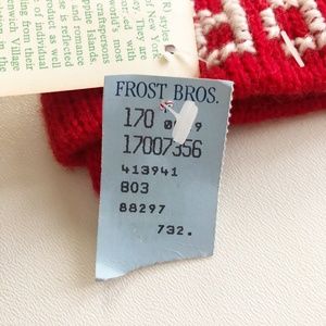A knit style Christmas stocking a colors of green and red. These are new with tags but does have a small amount of fraying of the gold thread on the presents in Santa's sack. Otherwise, there are no other issues to note. Clean, no staining/marks/discoloration. No holes or picks.