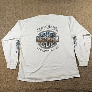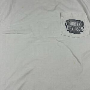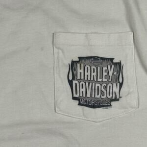 VTG Harley-Davidson Motorcycle Long Sleeve Y2K White Pocket Logo Mens Size 2XL