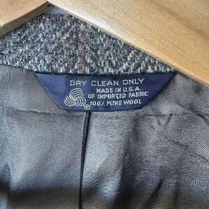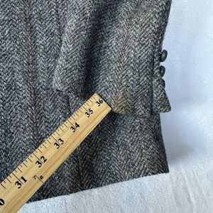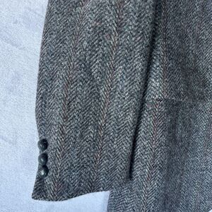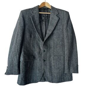 VTG Harris Tweed Handwoven Scottish Wool Herringbone Blazer Sport Coat Gray 44. What appears to be a small stain on the cuff of right sleeve I believe is the pattern of the wool (Photo 1). No size tag but mesurements suggest a size 44.