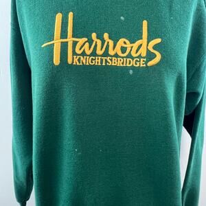VTG Harrods Knightsbridge Green Yellow Sweatshirt Cotton Crew Neck Size Medium M
