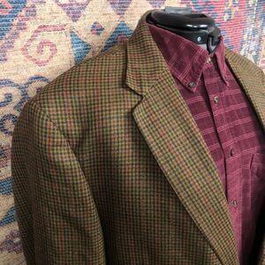 VTG Hart Schaffner Blazer Mens 50R Brown Houndstooth Wool Sport Coat Suit Jacket